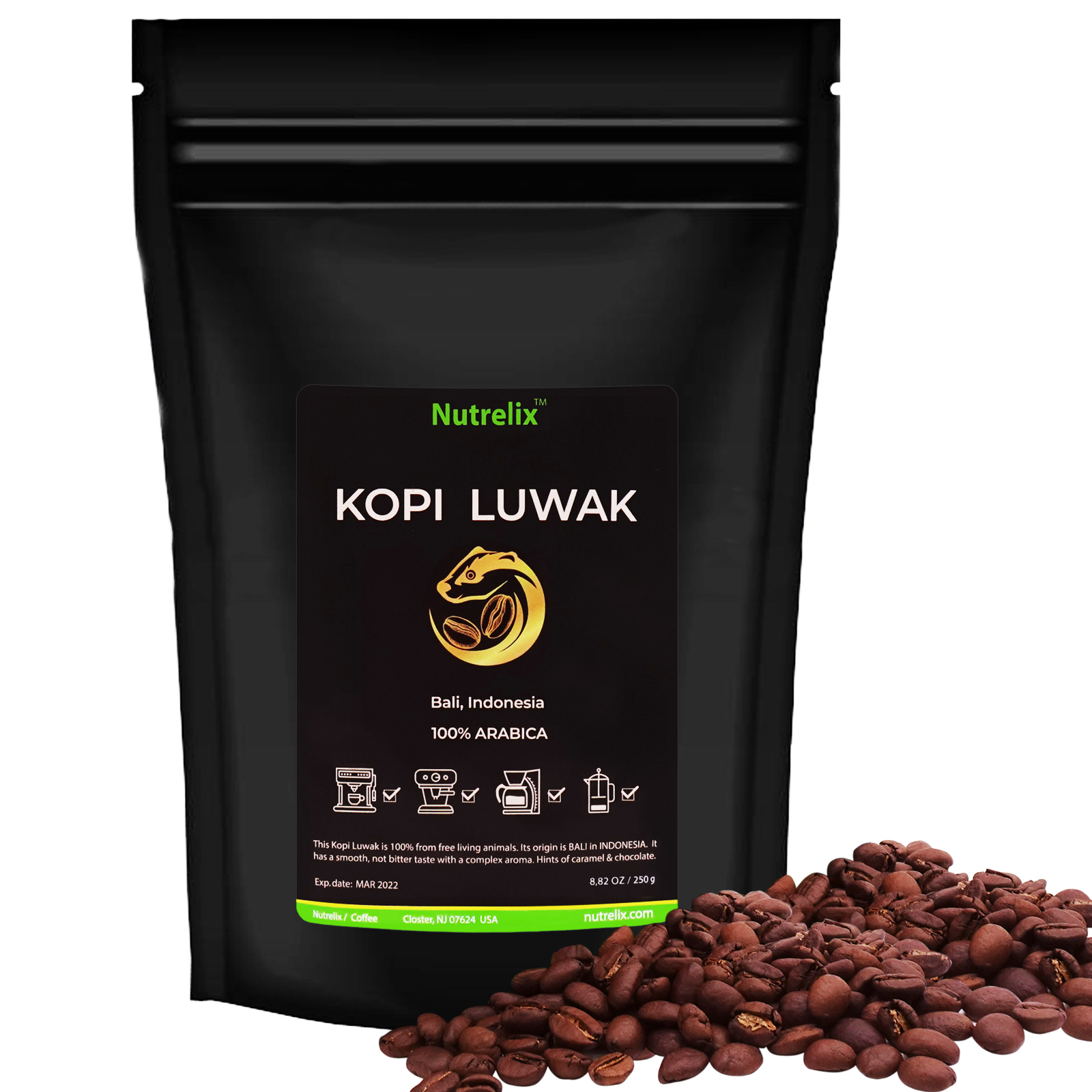 Nutrelix Premium Civet Coffee Kopi Luwak Whole Beans Medium Roast 100 Arabica Indonesian 8 8oz Walmart Com